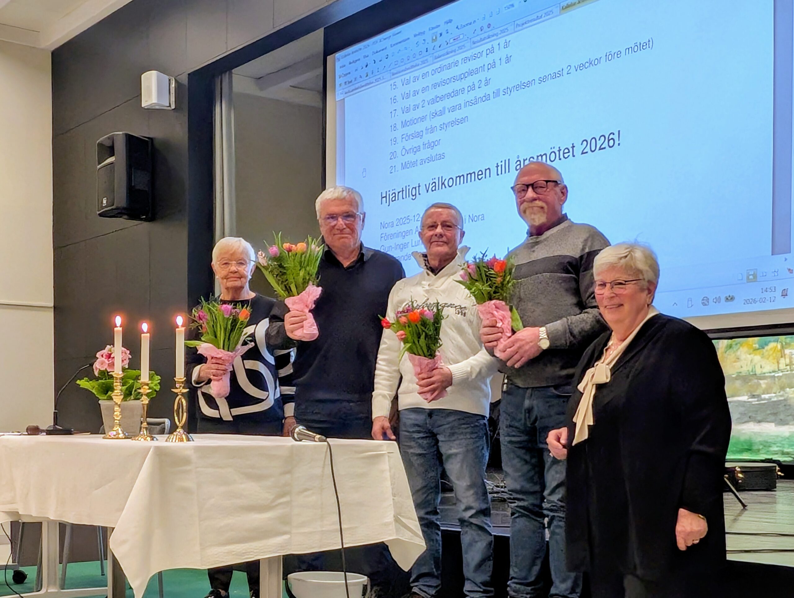 Den 12 februari hade Aktiva seniorer Nora årsmöte i Hagby ängars samlingslokal. Innan årsmötesförhandlingarna hölls en tyst minut för de medlemmar som avlidit under 2025. Sedan genomfördes årsmötet. 115 medlemmar deltog på mötet.